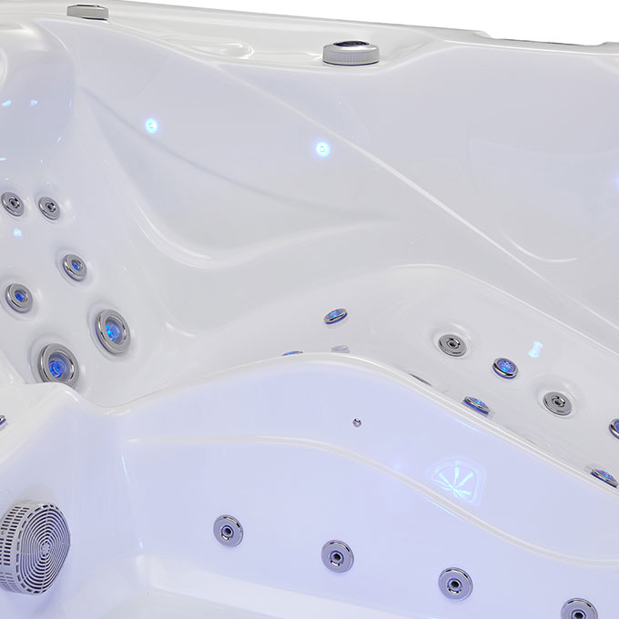Каждая из 38 массажных форсунок расположена с учетом анатомических особенностей тела. Мощные водяные и воздушные потоки мягко разглаживают мышцы, даря ощущение невесомости и покоя.
