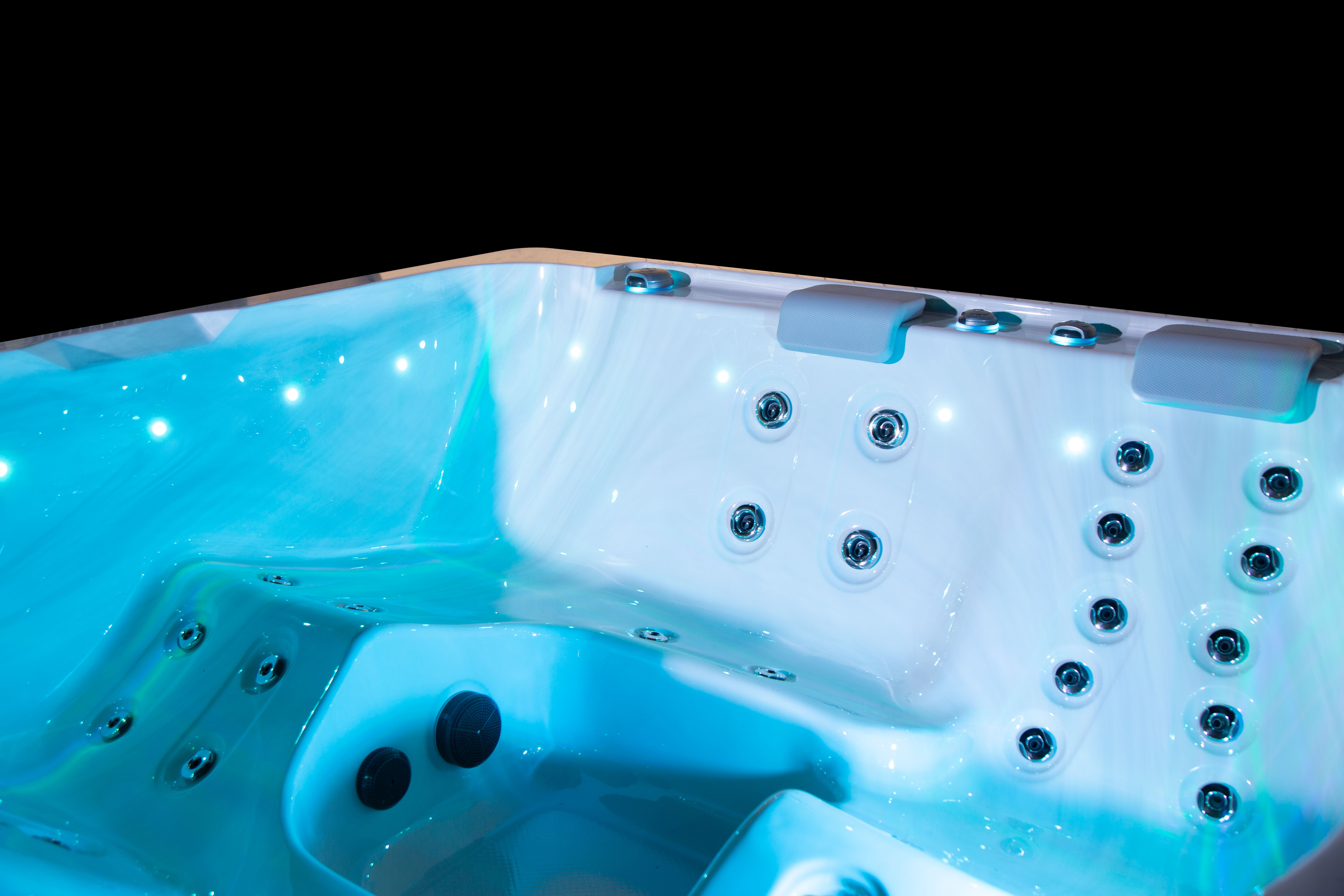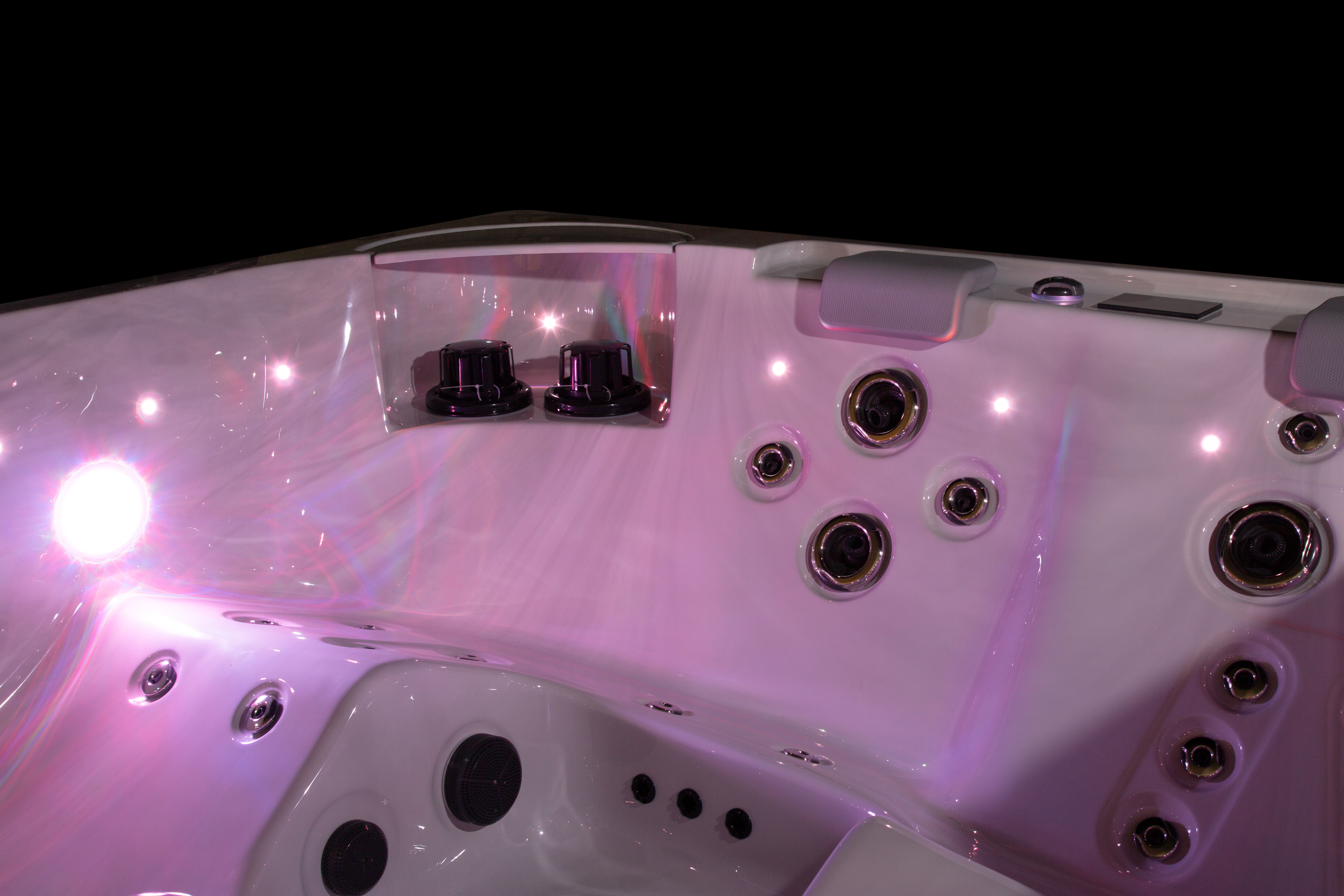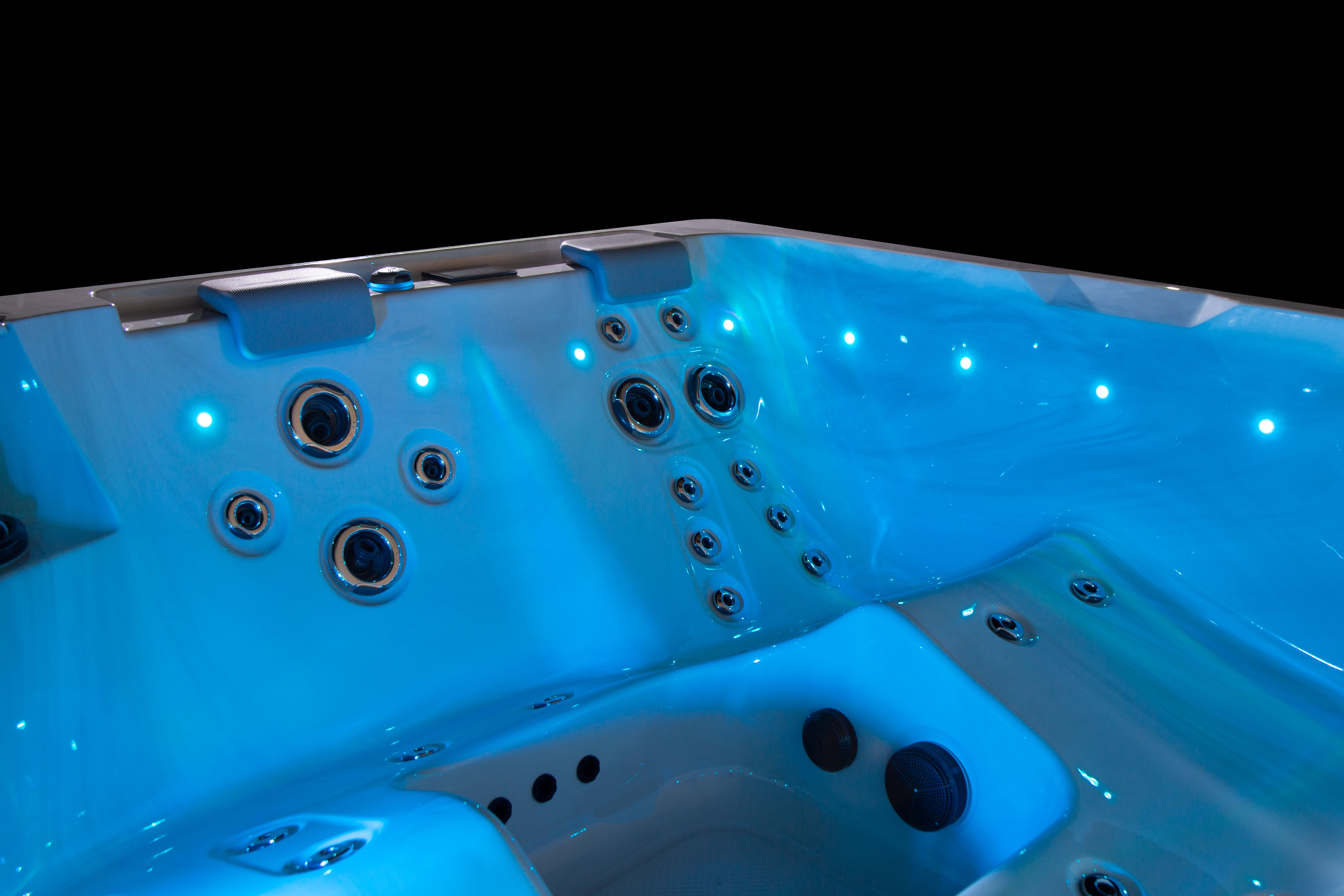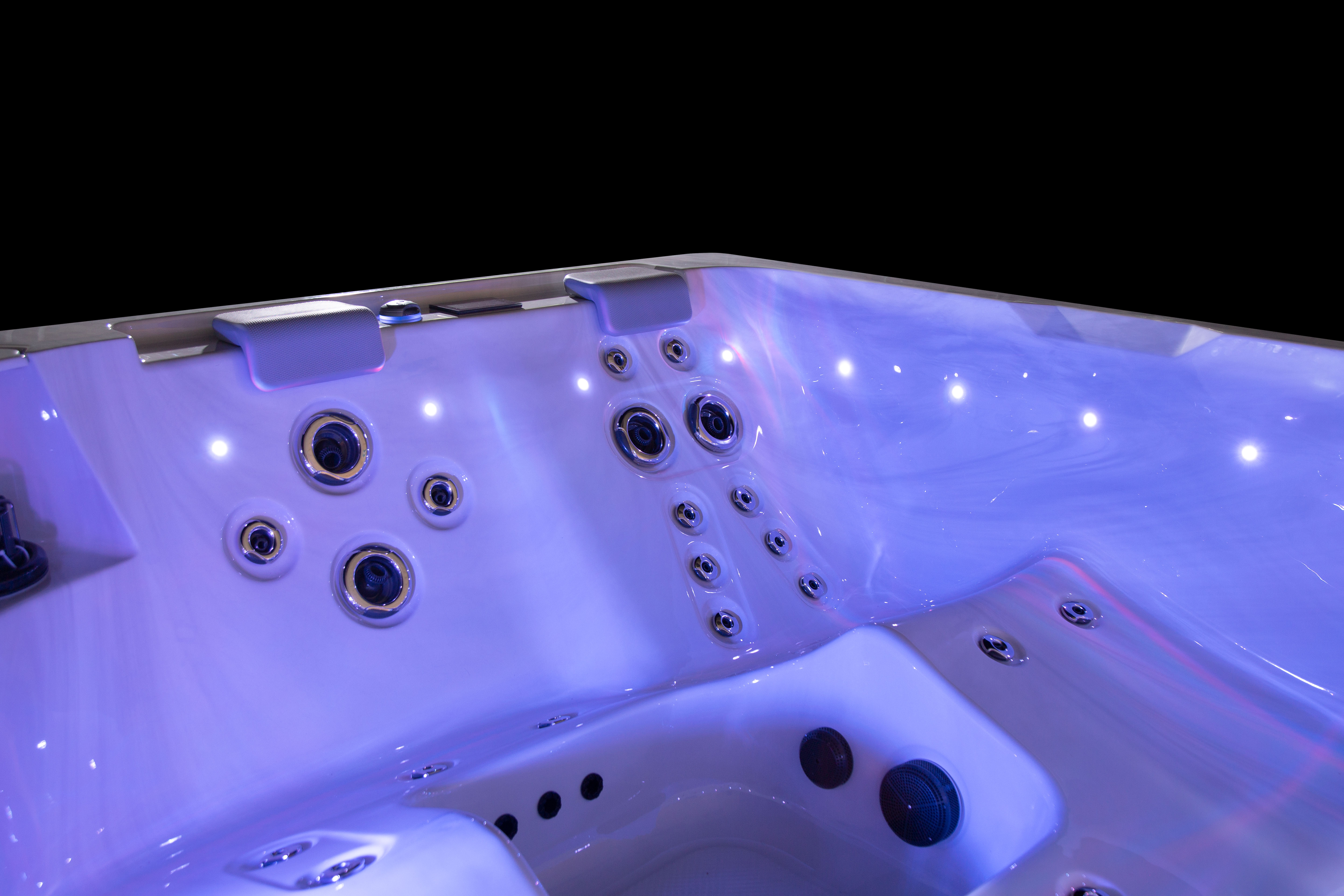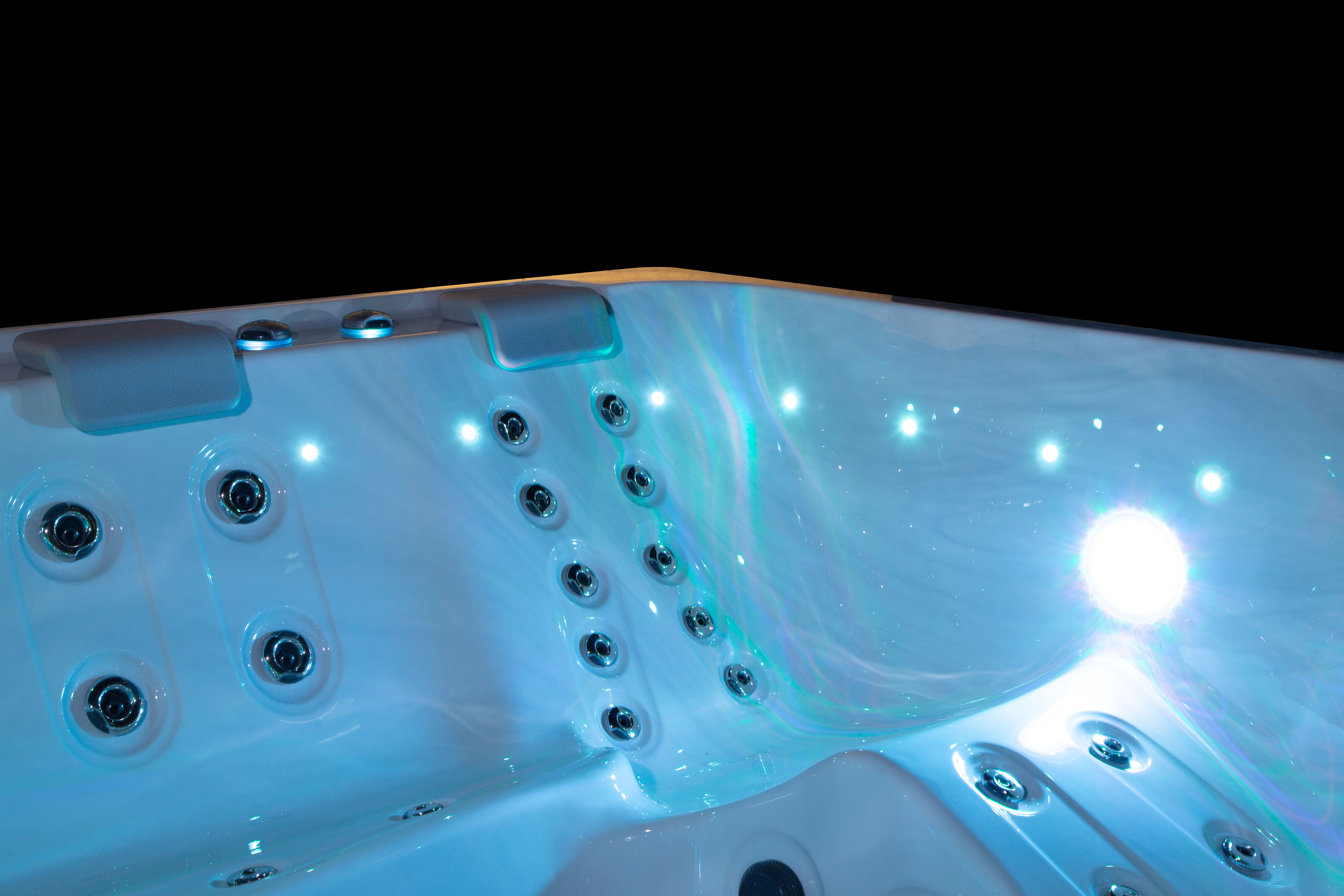 Хорошо продуманная система освещения превращает вечерний отдых в эстетическое наслаждение. Многоцветная подводная подсветка Northern Lights, дополненная изящной подсветкой ватерлинии, создает сложную игру света на воде, способствующую глубокой релаксации и визуальной гармонии.