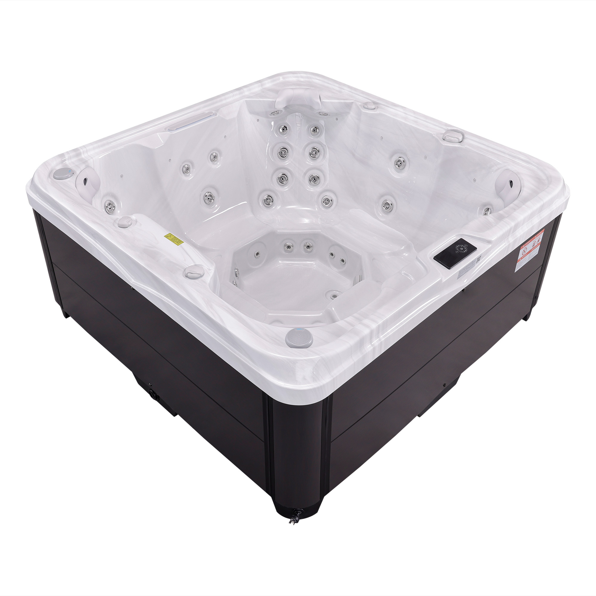 NordicSpa Sif с размером чаши 2,0 x 2,0 м идеально подходит для установки как в помещении, так и на улице. Просторная квадратная чаша с четырьмя эргономичными подголовниками комфортно вмещает до семи человек, создавая условия для полноценного отдыха и общения.