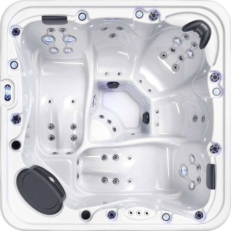 Для изделия таких размеров, в гидромассажном СПА-бассейне Ловиа Спа ZR807 установлено довольно много форсунок - 41 штуки. Через них вода и воздух направленно воздействуют на тело, производя желаемый гидромассажный эффект. Каждый пользователь может индивидуально регулировать силу потока.