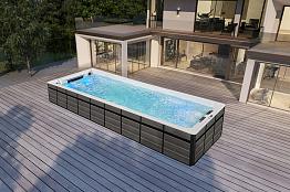 Модель бассейна из категории Sport, считается своеобразным тренажером благодаря встроенному противотоку. Насосы создают реактивную мощность, которая предопределяет интенсивность противотоков. Компактные форсунки формируют водяные потоки, управляемые программой в автономном режиме.